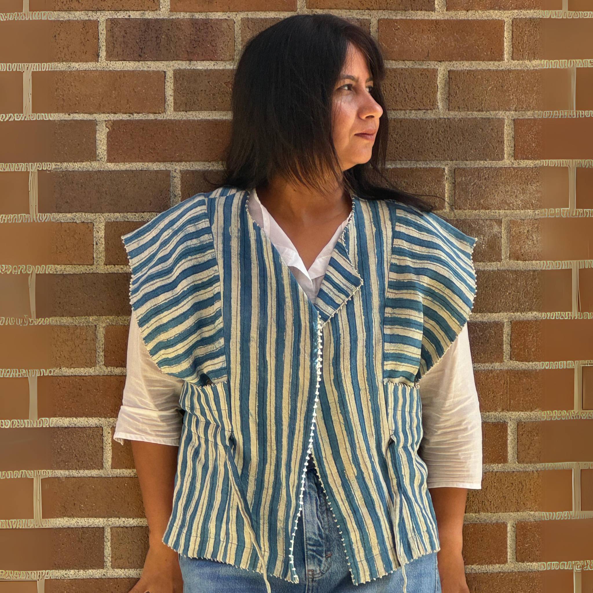 Handcrafted Sustainable Indigo Block Print Linen Kimono Jacket